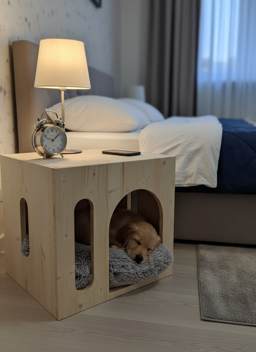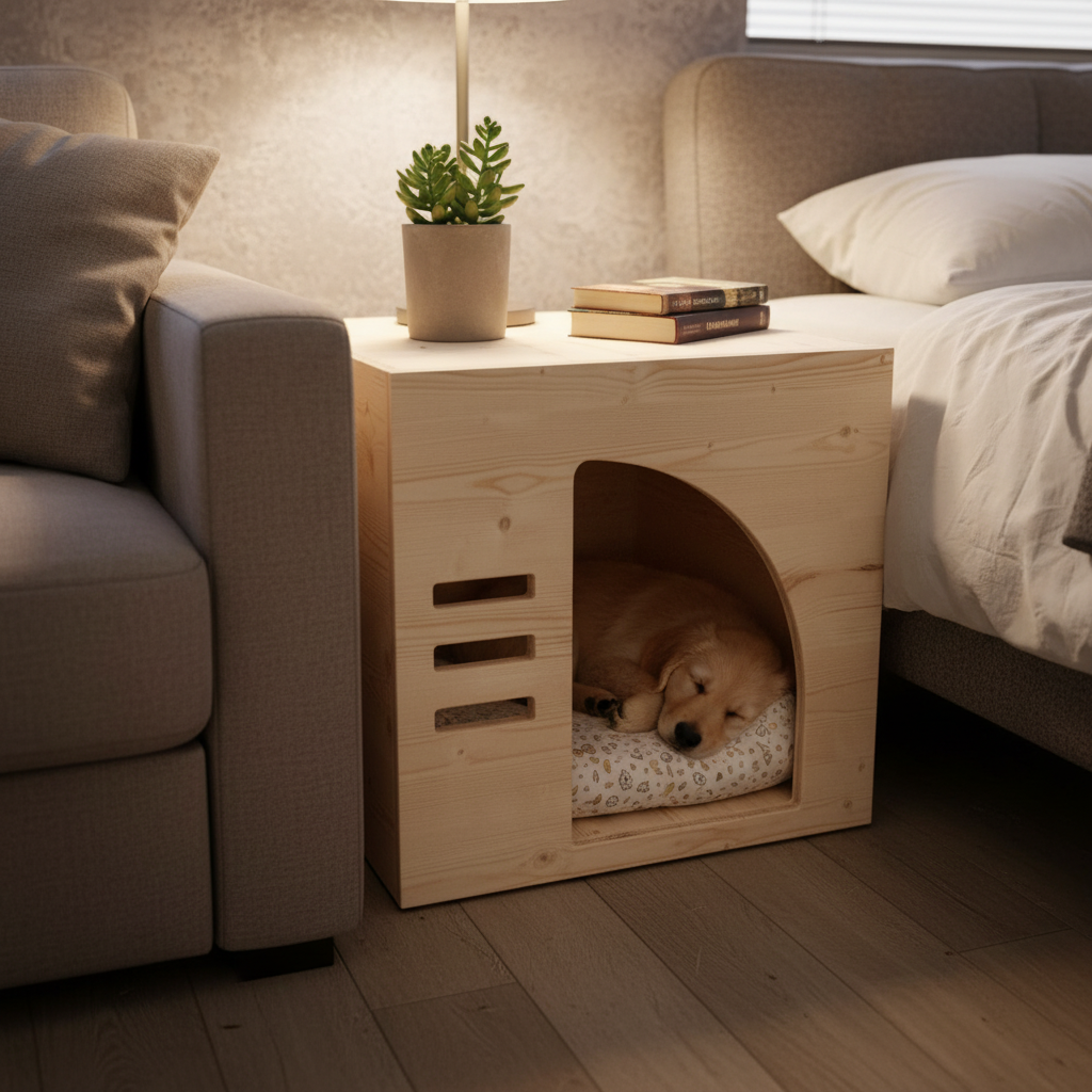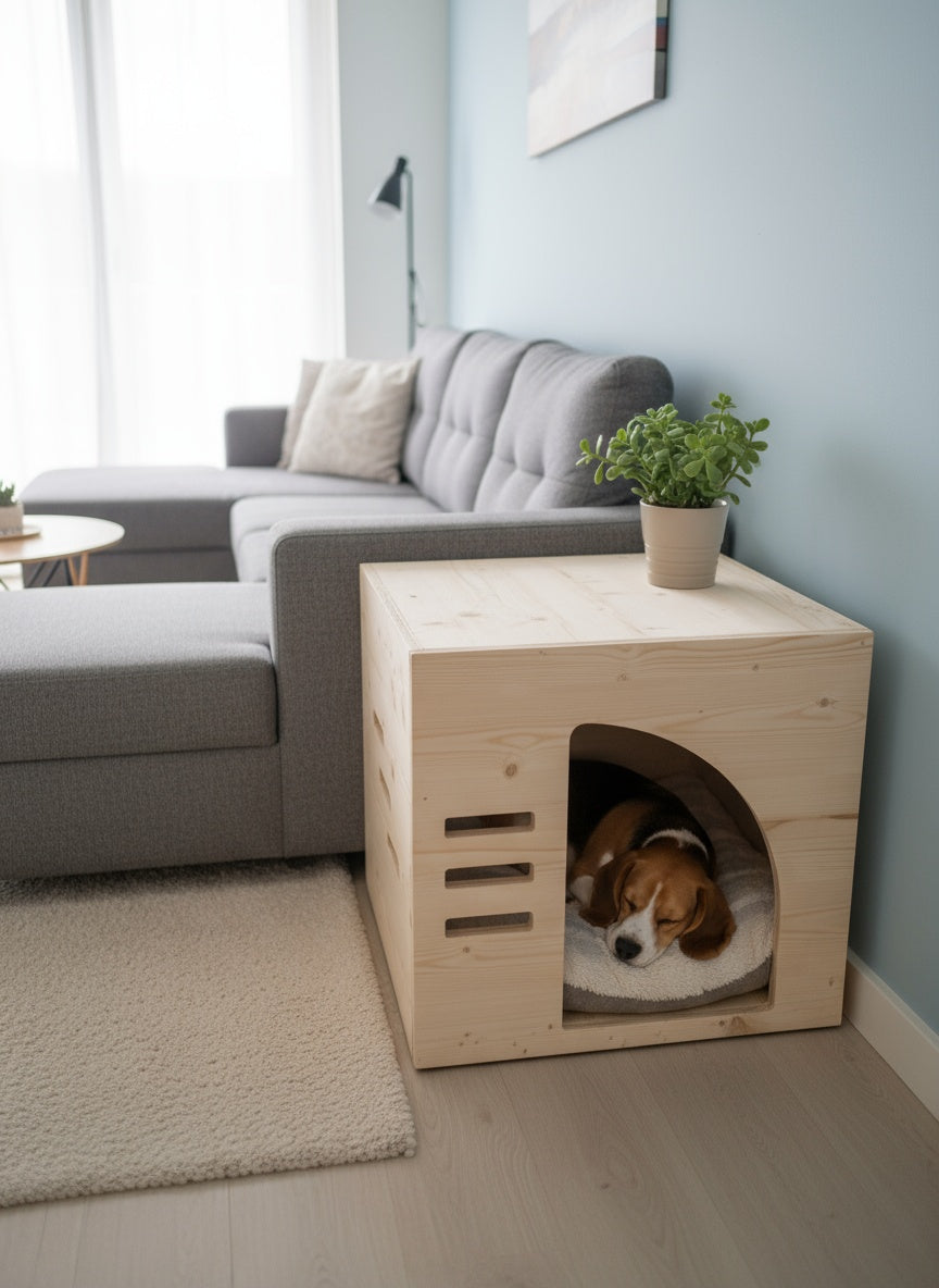 Entworfen für Hunde, die zur Familie gehören.Handgefertigt aus Fichtenholz – für ein Zuhause, das hält.